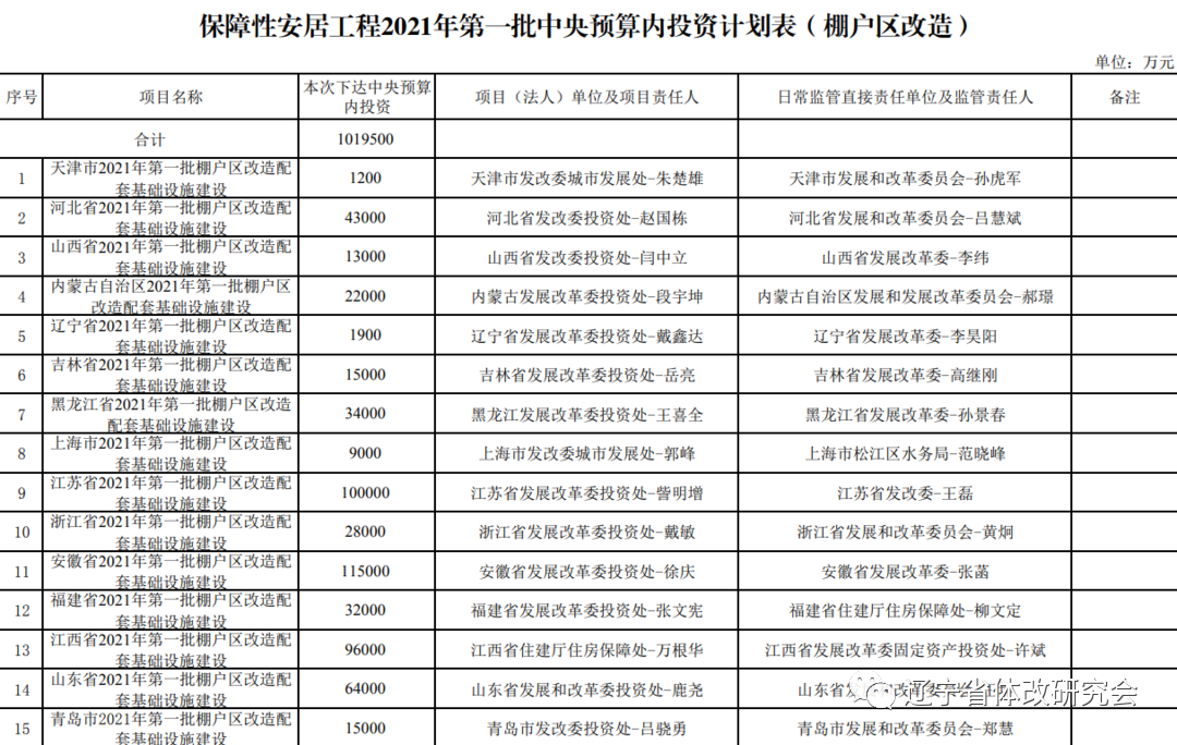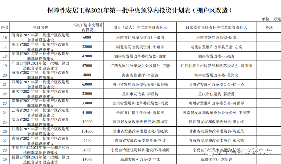 保障性安居工程2021年第一批中央预算内投资计划表(棚户区改造)